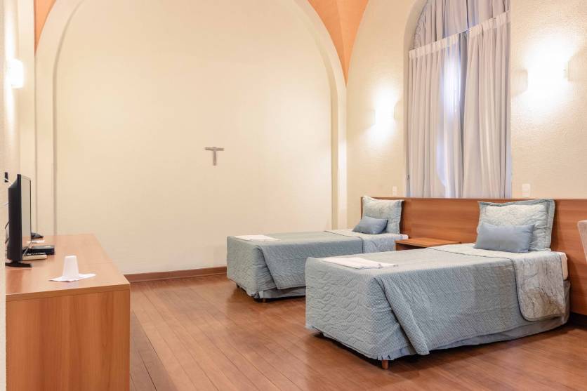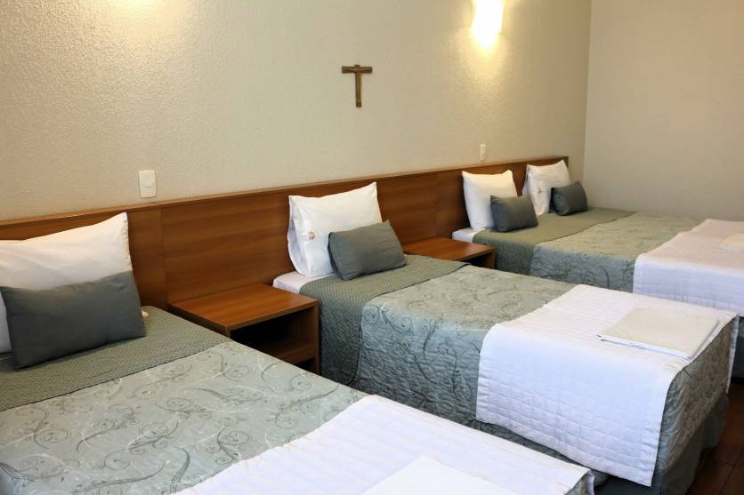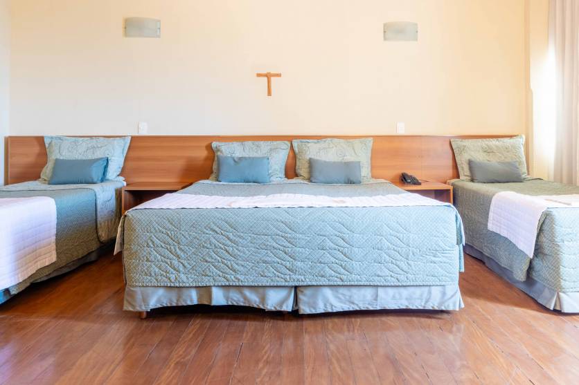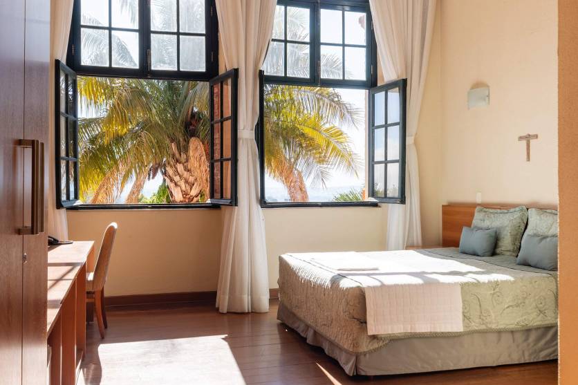 Já imaginou acordar em um desses quartos super confortáveis, cercados por muita natureza, com jardins, bosques e com o canto dos pássaros? E tudo isso no Centro da cidade de Aparecida, a menos de 2 km do Santuário Nacional? Na Pousada do Bom Jesus você pode viver essa experiência inesquecível!